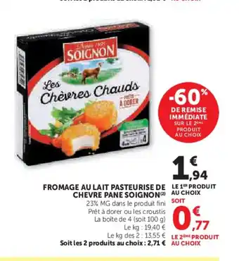 Actuellement en offre chez Super U : SOIGNON Fromage au lait pasteurise de chevre pane ✅ Valable du 24-02 au 8-03.