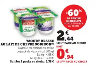 Actuellement en offre chez Super U : SOIGNON Yaourt brasse au lait de chevre ✅ Valable du 13-01 au 25-01.