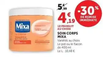 Actuellement en offre chez Super U : Soin Corps Mixa ✅ Valable du 8-04 au 19-04.