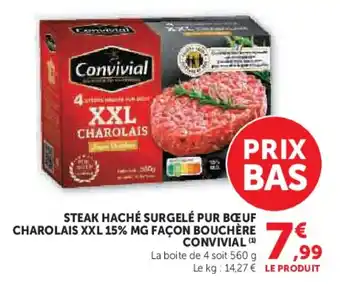 Steak haché surgelé pur bœuf charolais xxl 15% mg façon bouchère convivial 560 g