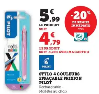 Actuellement en offre chez Super U : Stylo 4 couleurs effacable frixion pilot ✅ Valable du 6-01 au 18-01.