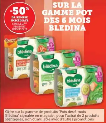 Actuellement en offre chez Super U : SUR LA GAMME POT DES 6 MOIS BLEDINA ✅ Valable du 6-01 au 18-01.