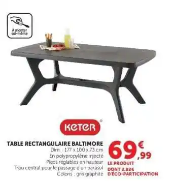 Actuellement en offre chez Super U : Table Rectangulaire Baltimore ✅ Valable du 28-04 au 24-05.
