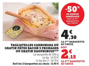 Tagliatelles carbonara ou gratin pâtes bacon 3 fromages ou gratin dauphinois offres et promotions en ligne chez Super U