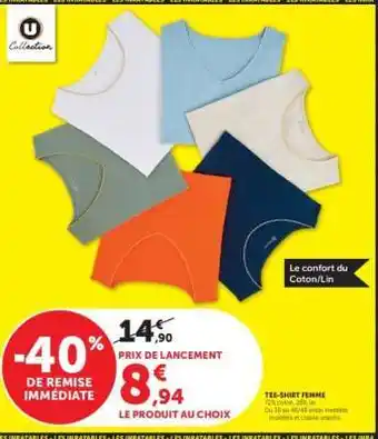 Actuellement en offre chez Super U : Tee-Shirt Femme ✅ Valable du 8-04 au 19-04.