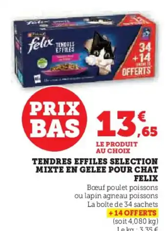 Actuellement en offre chez Super U : Tendres effiles selection mixte en gelee pour chat felix ✅ Valable du 6-01 au 18-01.