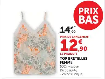 Actuellement en offre chez Super U : Top bretelles femme ✅ Valable du 8-04 au 19-04.