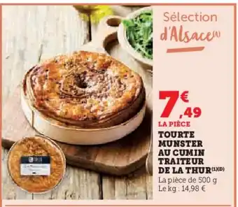 Actuellement en offre chez Super U : Tourte munster au cumin traiteur de la thur ✅ Valable du 13-01 au 25-01.