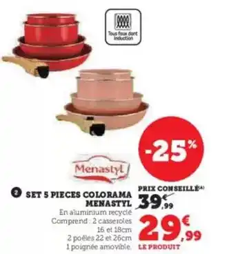 Actuellement en offre chez Super U : Tous - set 5 pieces colorama menastyl ✅ Valable du 10-02 au 15-02.