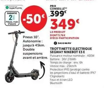 Actuellement en offre chez Super U : TROTTINETTE ELECTRIQUE SEGWAY NINEBOT E3 E ✅ Valable du 28-04 au 24-05.