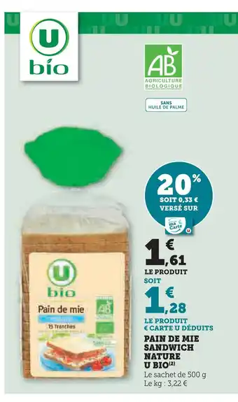 U bio pain de mie sandwich nature : offres et promos Super U à découvrir