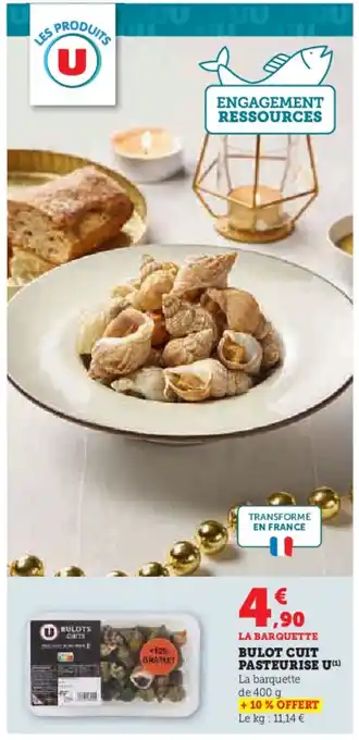 Actuellement en offre chez Super U : U Bulot cuit pasteurise ✅ Valable du 17-12 au 24-12.