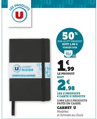 En plus de l'offre U carnet, Super U propose une large gamme de produits. Consultez le Catalogue Super U hebdomadaire pour découvrir les meilleures offres et promotions. En plus de U carnet, il y a aussi : U - carnet, Carnet u & Carnet u.