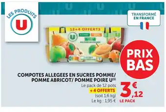 U compotes allégées en sucres pomme/pomme abricot/pomme poire offres et promotions en ligne chez Super U