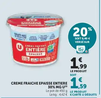 U Creme fraiche epaisse entiere 30% mg offres et promotions en ligne chez Super U