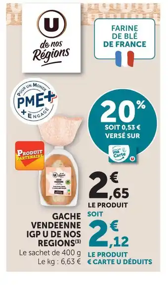 Actuellement en offre chez Super U : U de nos regions gâche vendéenne igp ✅ Valable du 3-03 au 15-03.