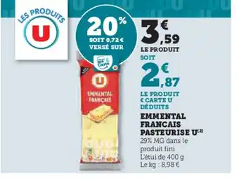 Actuellement en offre chez Super U : U Emmental français pasteurise ✅ Valable du 3-02 au 15-02.