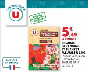 Actuellement en offre chez Super U : U engrais géraniums et plantes fleuries ✅ Valable du 14-04 au 26-04.
