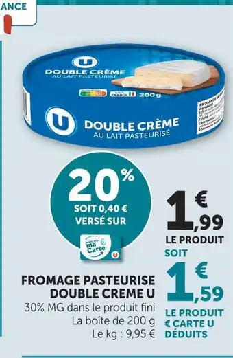 Actuellement en offre chez Super U : U fromage pasteurisé double crème ✅ Valable du 28-04 au 10-05.