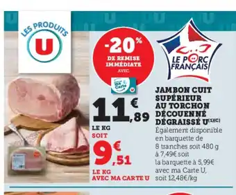 U Jambon cuit supérieur au torchon découenné dégraissé : offres et promos Super U à découvrir