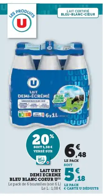 Actuellement en offre chez Super U : U Lait uht demi ecreme bleu blanc coeur ✅ Valable du 3-02 au 15-02.