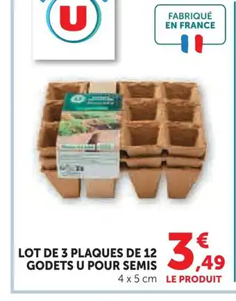 Offre U lot de 3 plaques de 12 godets pour semis chez Super U