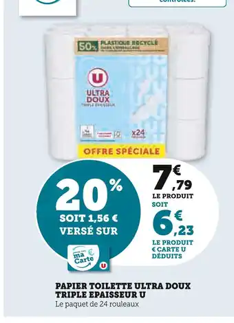 Actuellement en offre chez Super U : U papier toilette ultra doux triple epaisseur ✅ Valable du 6-01 au 18-01.