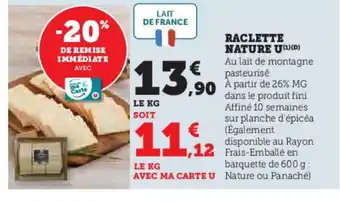 Actuellement en offre chez Super U : U Raclette nature ✅ Valable du 3-02 au 15-02.