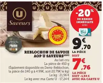 Actuellement en offre chez Super U : U - reblochon de savoie aop saveurs ✅ Valable du 27-01 au 8-02.