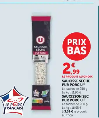 U Saucisse seche pur porc offres et promotions en ligne chez Super U
