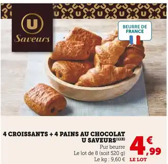 U saveurs 4 croissants + 4 pains au chocolat offres et promotions en ligne chez Super U