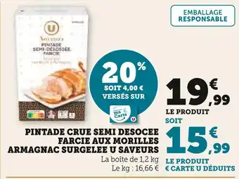 Offre U saveurs pintade crue semi désossée farcie aux morilles armagnac surgelée chez Super U