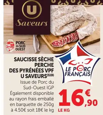 Actuellement en offre chez Super U : U saveurs saucisse sèche perche des pyrénées vpf ✅ Valable du 28-04 au 10-05.