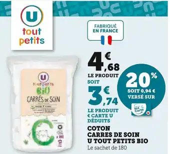 U tout petits coton carrés de soin bio : offres et promos Super U à découvrir