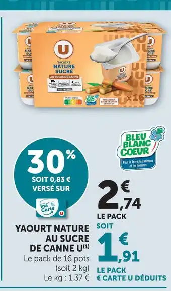 Actuellement en offre chez Super U : U yaourt nature au sucre de canne ✅ Valable du 28-04 au 10-05.