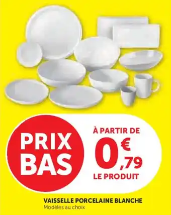 Vaisselle porcelaine blanche bénéficie actuellement d'une réduction chez Super U. Vous trouverez ici toutes les infos utiles sur les prix, la durée de validité et les conditions de l’offre. Pensez à consulter aussi d'autres offres et promotions similaires pour Vaisselle porcelaine blanche afin d’acheter toujours au bon prix. La promo Vaisselle porcelaine blanche est valable du 24-03-2026 au 06-04-2026. Offre terminée ? Pas de souci. D'autres offres sur ces produits sont peut-être déjà disponibles. Vous pouvez suivre cette catégorie de produits pour rester informé en cas de nouvelle promotion Vaisselle porcelaine blanche chez Super U. En comparant les offres, vous êtes sûr d’acheter au prix le plus bas possible.Questions fréquemment posées au sujet de Vaisselle porcelaine blanche