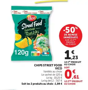 En plus de l'offre VICO Chips street food, Super U propose une large gamme de produits. Consultez le Catalogue Super U hebdomadaire pour découvrir les meilleures offres et promotions. En plus de VICO Chips street food, il y a aussi : Vico - chips street food, Chips Street Food Vico & Vico chips.