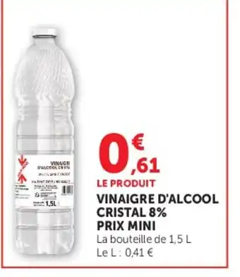 Actuellement en offre chez Super U : Vinaigre d'alcool cristal 8% prix mini ✅ Valable du 21-04 au 3-05.