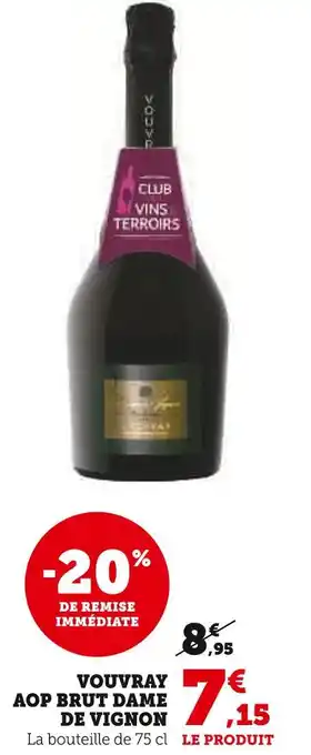 Actuellement en offre chez Super U : Vouvray aop brut dame de vignon ✅ Valable du 27-12 au 4-01.