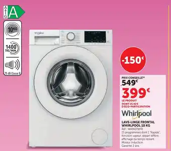 Whirlpool lave-linge frontal 10 kg offres et promotions en ligne chez Super U