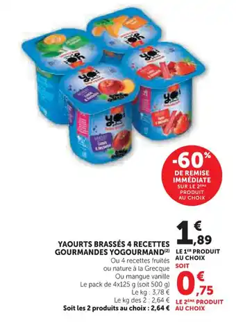 En plus de l'offre YOGOURMAND Yaourts brassés 4 recettes gourmandes, Super U propose une large gamme de produits. Consultez le Catalogue Super U hebdomadaire pour découvrir les meilleures offres et promotions. En plus de YOGOURMAND Yaourts brassés 4 recettes gourmandes, il y a aussi : Carrefour - yaourts brassés, Yaourts brassés CARREFOUR CLASSIC' & Yaourts Brassés aux Fruits Mixés 'Délisse'.