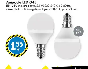L'offre est disponible dans plusieurs magasins, vérifiez tous les produits pour obtenir le Ampoule LED G45 le moins cher. Si vous souhaitez savoir si l'article est en vente avec une plus grosse remise dans un autre magasin, consultez la catégorie 'Bazar et Déstockage'. Ces offres pourraient aussi vous intéresser : Ampoule led, Ampoule led & Simply - ampoule led.