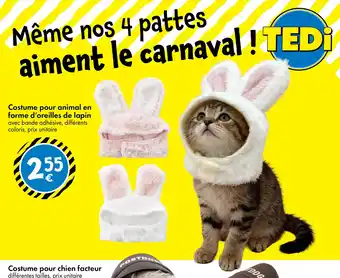 Actuellement en offre chez TEDi : Costume pour animal en forme d'oreilles de lapin ✅ Valable du 28-01 au 7-02.