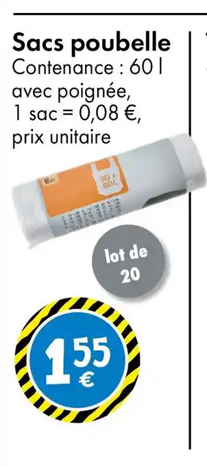 Actuellement, Sacs poubelle est en promotion chez TEDi. Toutes les informations utiles comme le prix, les conditions et la durée de validité sont affichées sur cette page. Consultez également les promotions similaires pour Sacs poubelle, afin de faire le meilleur choix. La promo Sacs poubelle est valable du 28-01-2026 au 07-02-2026. Si elle est expirée, regardez les autres offres équivalentes. Vous pouvez aussi suivre cette catégorie de produit pour être alerté lorsqu’une nouvelle promotion Sacs poubelle apparaît chez TEDi.Questions fréquemment posées au sujet de Sacs poubelle