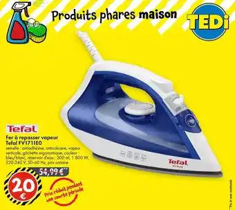 Actuellement en offre chez TEDi : TEFAL Fer à repasser vapeur Tefal FV1711E0 ✅ Valable du 19-02 au 26-02.