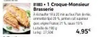 Offre 1 croque-monsieur brasserie chez Thiriet