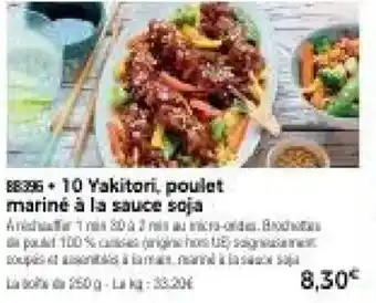 L'offre est disponible dans plusieurs magasins, vérifiez tous les produits pour obtenir le 10 yakitori, poulet mariné à la sauce soja le moins cher. Si vous souhaitez savoir si l'article est en vente avec une plus grosse remise dans un autre magasin, consultez la catégorie 'Supermarché'. Ces offres pourraient aussi vous intéresser : 8 Tsukunes, poulet marinė à la sauce soja, AJINOMOTO Yakitori surgelé poulet sauce teriyaki & AJINOMOTO Yakitori surgelé poulet sauce teriyaki.