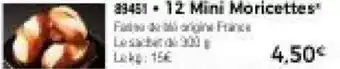L'offre est disponible dans plusieurs magasins, vérifiez tous les produits pour obtenir le 12 mini moricettes le moins cher. Si vous souhaitez savoir si l'article est en vente avec une plus grosse remise dans un autre magasin, consultez la catégorie 'Supermarché'. Ces offres pourraient aussi vous intéresser : 12 Mini Moricettes garnies, 10 Mini moricettes garnies & 20 Mini moricettes aux graines.