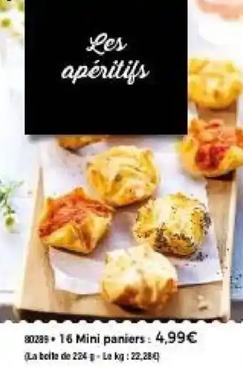 L'offre est disponible dans plusieurs magasins, vérifiez tous les produits pour obtenir le 16 Mini paniers le moins cher. Si vous souhaitez savoir si l'article est en vente avec une plus grosse remise dans un autre magasin, consultez la catégorie 'Supermarché'. Ces offres pourraient aussi vous intéresser : 16 Mini paniers, Mini feuilletés paniers & PANIERS GOUTTIÈRES.