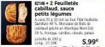 2 feuilletés cabillaud, sauce petits légumes : offres et promos Thiriet à découvrir